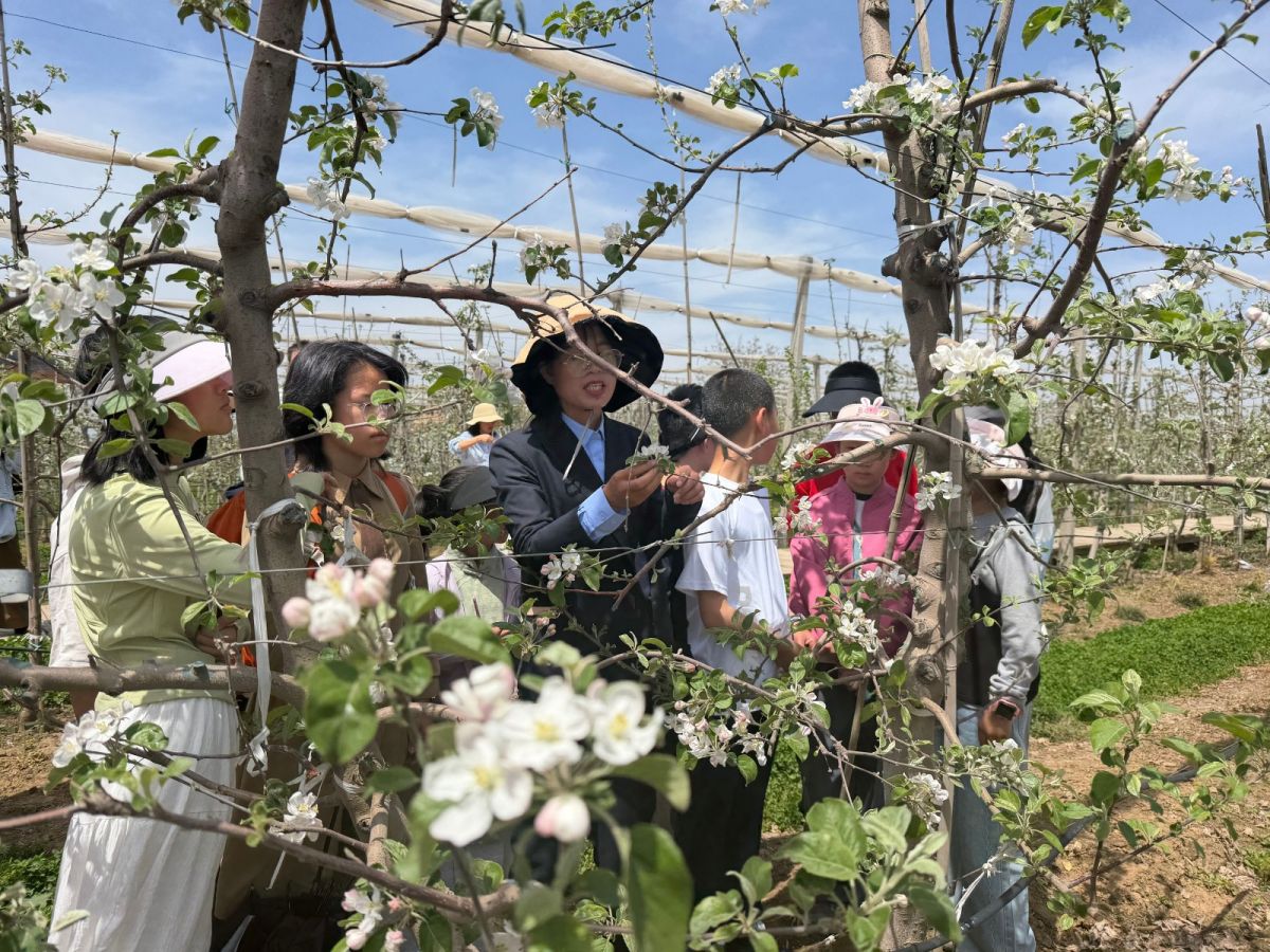 活動現(xiàn)場,四季農(nóng)事循環(huán)體驗區(qū)熱鬧非凡。在專業(yè)技術(shù)人員的指導(dǎo)下,孩子們和家長一同動手體驗人工授粉、枝條嫁接、除草套袋、病蟲害識別等農(nóng)事操作,從春日的授粉到冬日的修剪,孩子們在親手勞作中了解了蘋果生長的全過程,在協(xié)作中增進了親子情感。