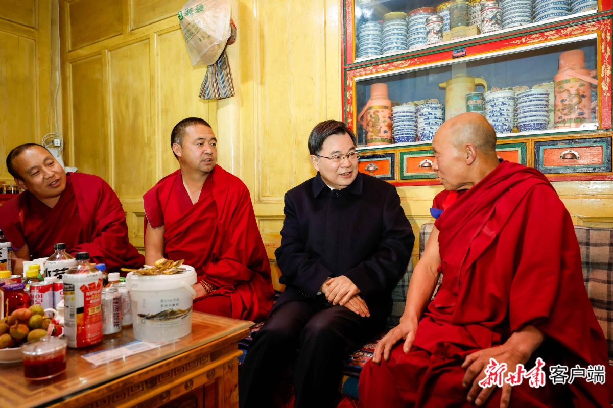 胡昌升來到多河寺、卡加曼寺,了解寺廟依法規(guī)范管理情況,同宗教界人士親切交談,并走訪慰問困難僧人。他強調(diào),要以鑄牢中華民族共同體意識為主線,深入實施“石榴籽”教育工程,扎實開展國家意識、公民意識、法治意識學(xué)習(xí)教育,引導(dǎo)僧俗群眾堅定不移聽黨話、跟黨走。要堅持我國宗教中國化方向,依法加強宗教事務(wù)管理,健全完善管理制度,幫助寺廟和僧人解決實際困難問題,及時排查消除寺廟消防、地災(zāi)等安全隱患,促進民族團結(jié)進步事業(yè)發(fā)展。要用心用情做好群眾工作,縱深推進“群眾工作五個全覆蓋”行動走深走實、落地見效,鞏固和發(fā)展民族和睦、宗教和順、社會和諧的良好局面。